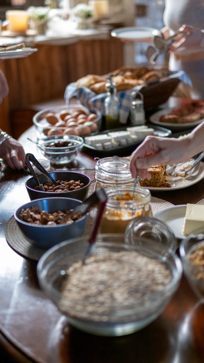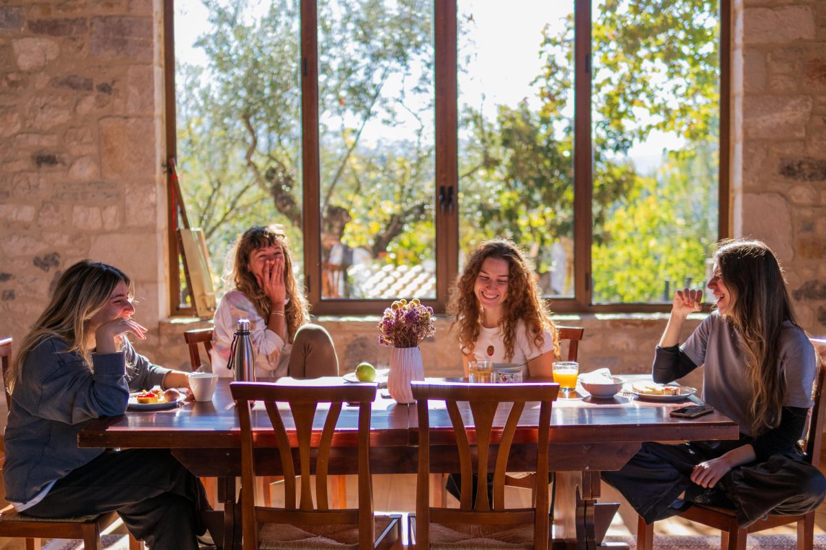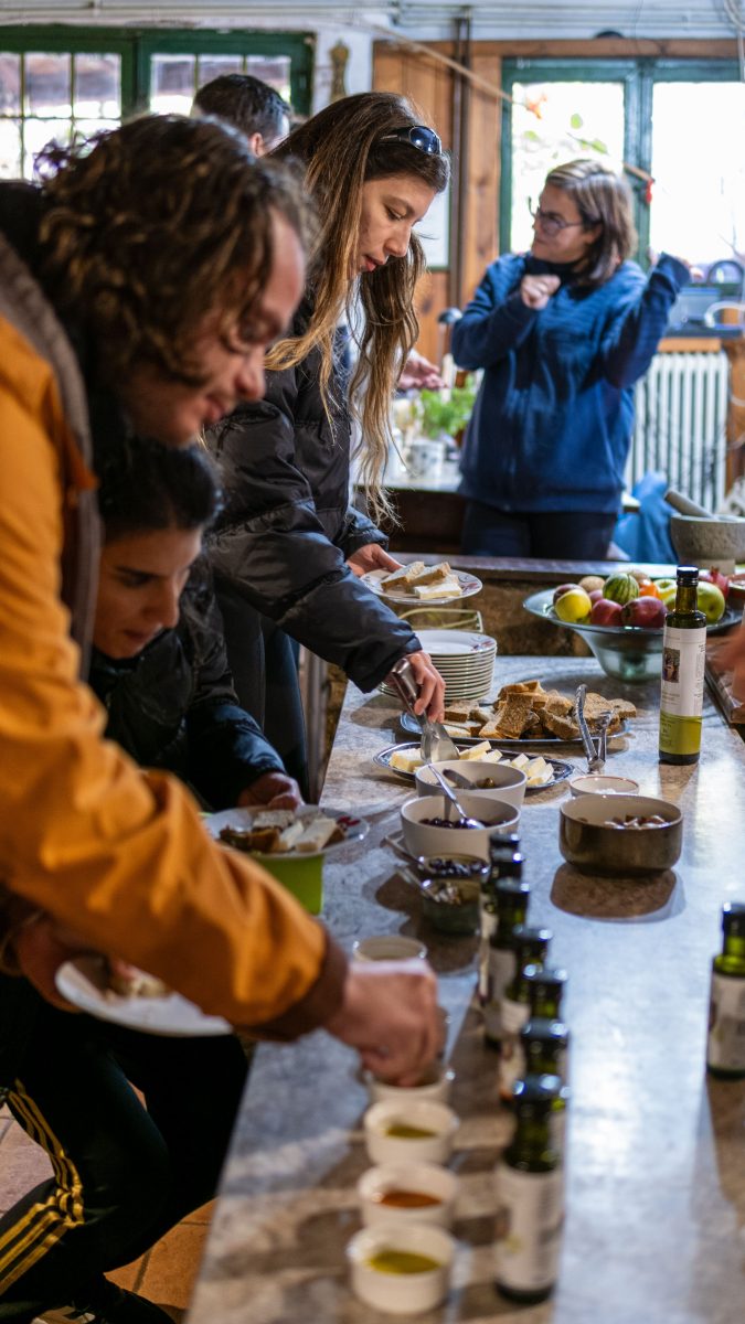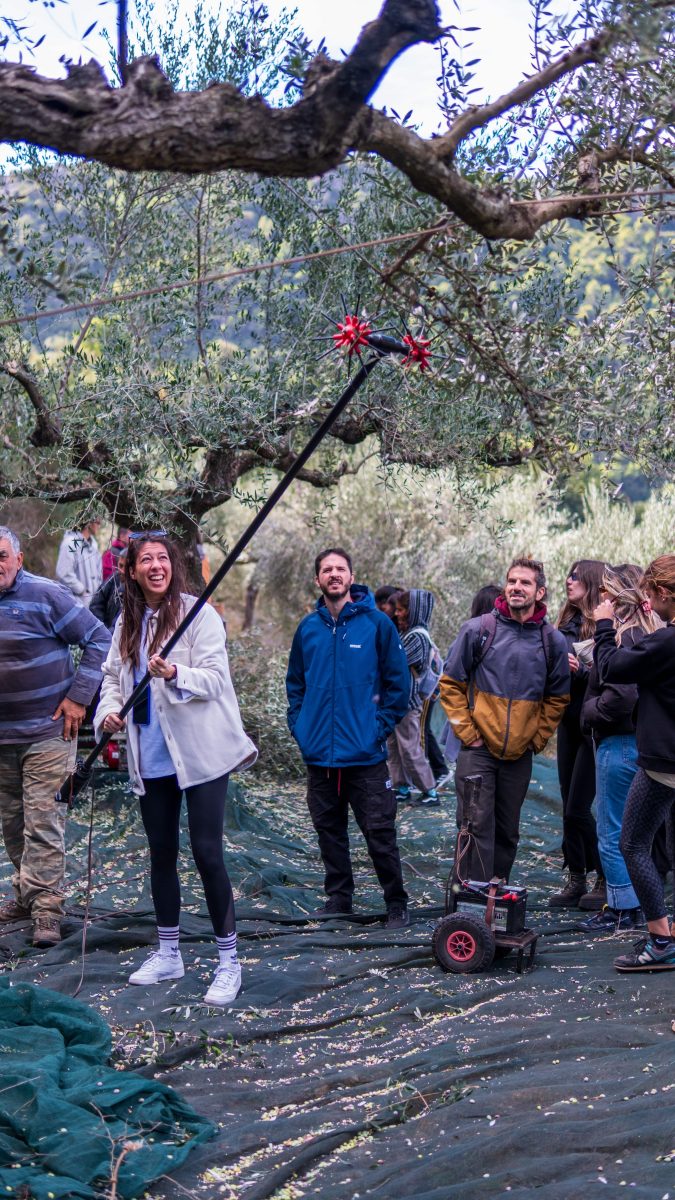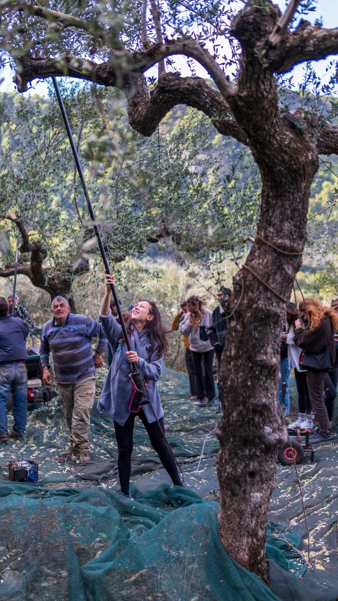 Ακολουθεί ένα χορταστικό πρωινό και στη συνέχεια η επίσκεψή μας στον τοπικό βιολογικό ελαιώνα με τις υπεραιωνόβιες ελιές. Ώρα να σηκώσουμε τα μανίκια και να μαζέψουμε τους καρπούς με το χέρι (διαδικασία που αποτελεί τη λιγότερο παρεμβατική μέθοδο) αλλά και με ραβδιά και χτένια.