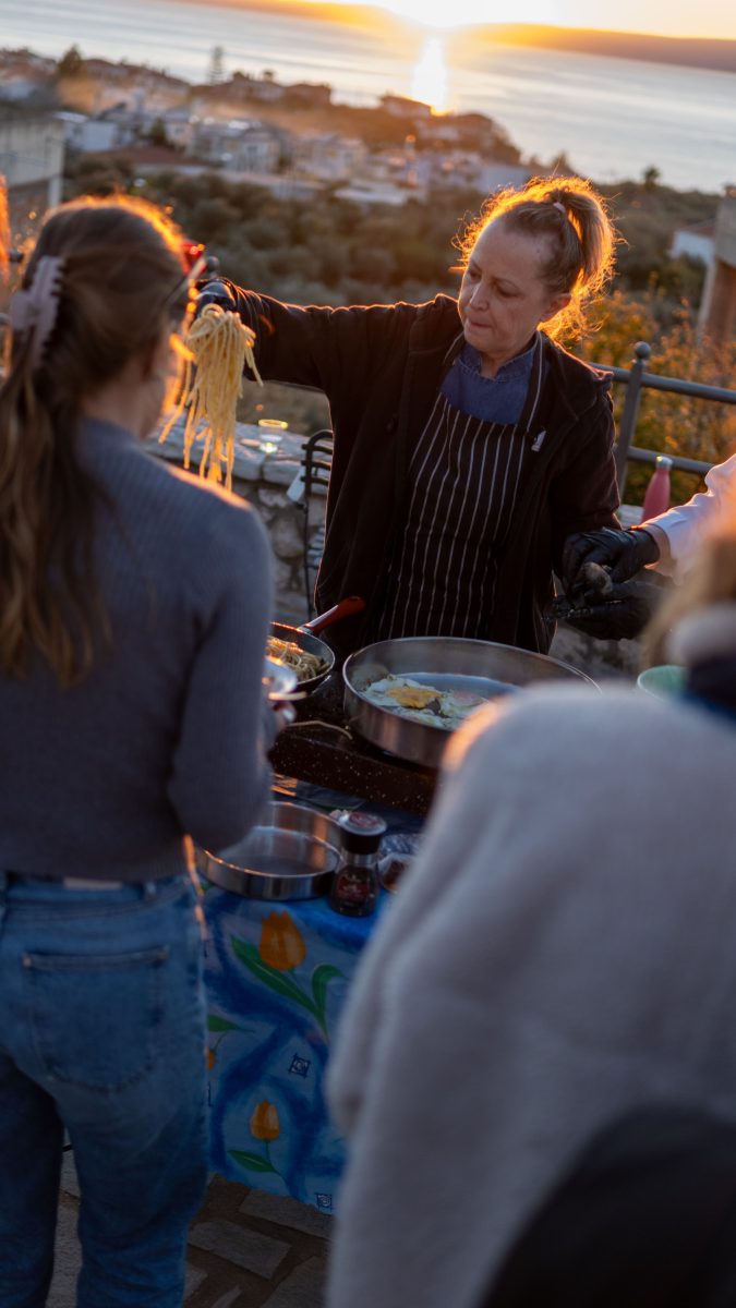 Γύρω στις 14.00 επιστρέφουμε στον ξενώνα για το cooking masterclass! O chef θα μας παρουσιάσει τις ιδιότητες του εξαιρετικά παρθένου ελαιόλαδου και θα μοιραστεί μαζί μας μυστικά σχετικά τον τρόπο διαχείρισής του τόσο στην κουζίνα όσο και εκτός!